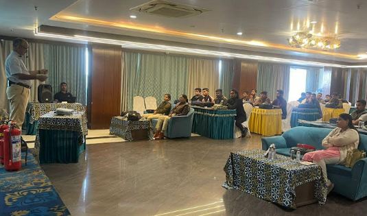 संकट मोचन बल सेफ्टी ट्रेनिंग इंस्टीट्यूट मुंबई, महाराष्ट्र से आए हुए प्रशिक्षक, एसडी फनसालकर इंडियन नेवी, इमरान अहमद इंडियन नेवी, मैनेजर मनीष झा, ट्रेनिंग कोऑर्डिनेटर इच्छांशु वाजपेयी के द्वारा अग्नि बचाव एवं राहत तकनीक की जानकारी कार्यशाला में दी गई ।